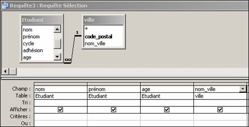 Access utilise le « langage » visuel QBE pour exécuter les requêtes. Cela évite de connaître et/ou de saisir celles-ci en langage SQL, mais cette possibilité est disponible sous ACCESS. En fait les requêtes que nous saisissons en mode QBE sont « transformées » en SQL par Access pour les exécuter. .Il est préférable d'utiliser le mode Création afin de bénéficier de plus de possibilités qu'avec l'assistant. Il faut auparavant avoir réglé le problème des relations entre les tables pour pouvoir travailler sur les requêtes (sous peine de se trouver en présence de produits cartésiens)