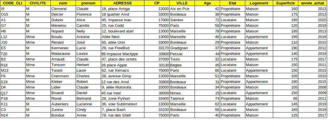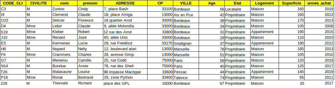 Ci-dessus on tri d'abord sur l'état (locataire/propriétaire), puis la ville et l'âge décroissant:
