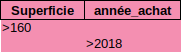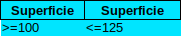 Pour les intervalles on utilisera deux fois la même colonne. Exempl epour les logement sdont la surface est comprise entre 100 et 125 m²