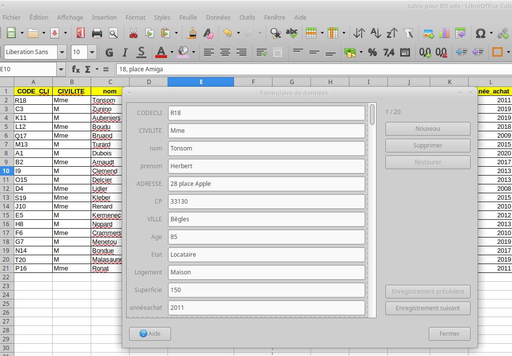 Le menu Données de calc permet d'accéder directeemnt au formualire. Sur Excel trouver le formulaire est une aventure...