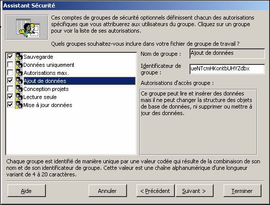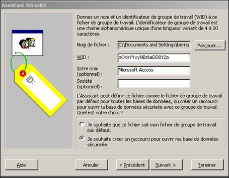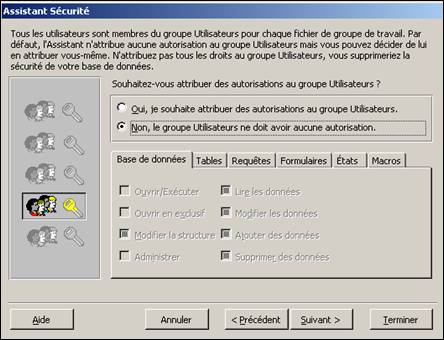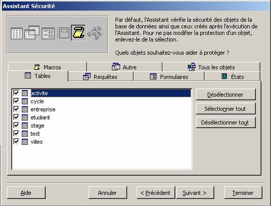 Access demande ensuite quels sont les éléments à protéger.
