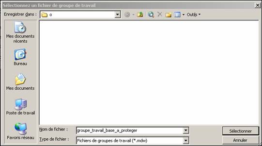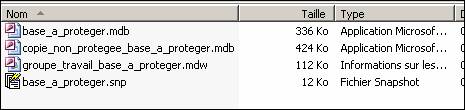 En cliquant sur un de ceux-ci on ne peut ouvrir la base, sauf pour le fichier qui est la copie non protégée. Pour accéder à la base protégée il faut aller sur le bureau