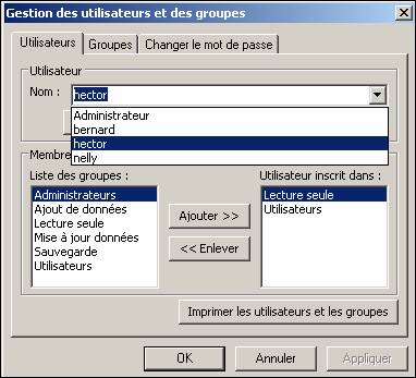 >Un mauvais mot de passe ne permet pas d'accéder à la base. Prenons Hector : Il accède à la base mais ne peut créer d'enregistrement ni faire de mise à jour.