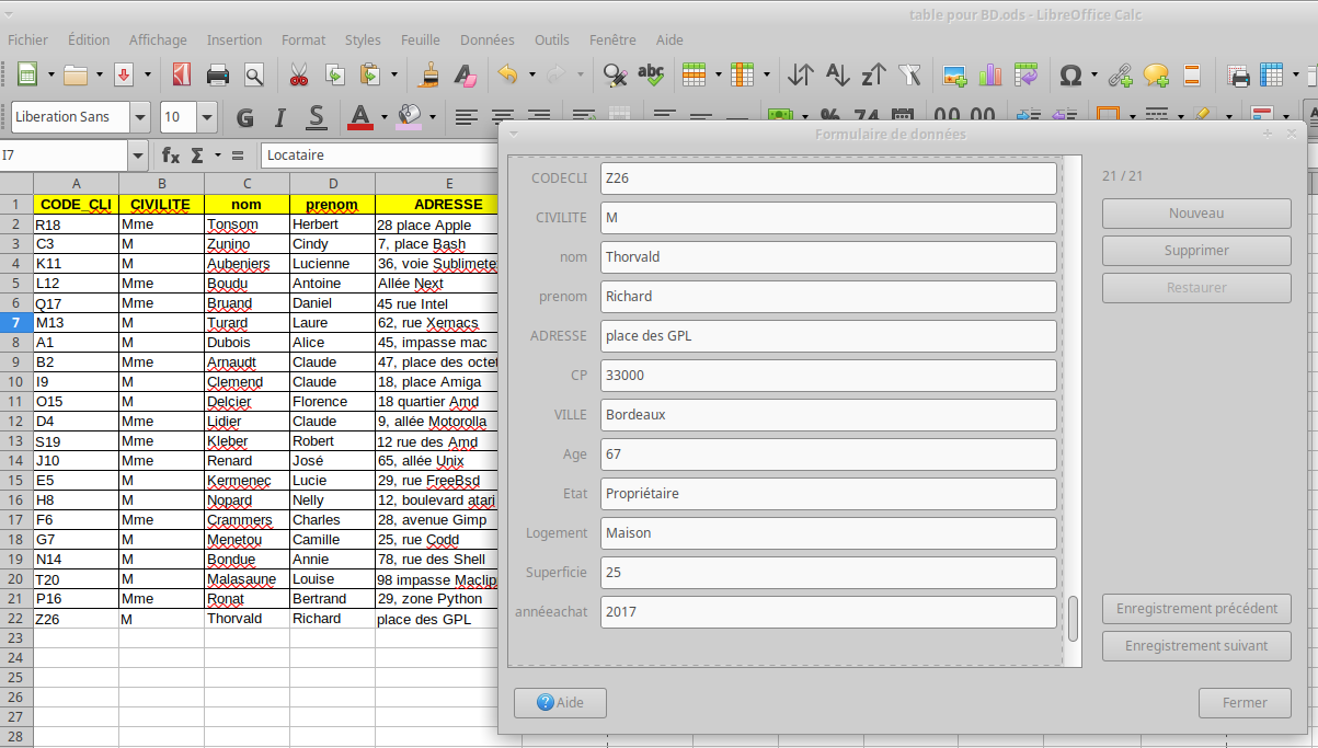Le menu Données de calc permet d'accéder directeemnt au formualire. Sur Excel trouver le formulaire est une aventure...